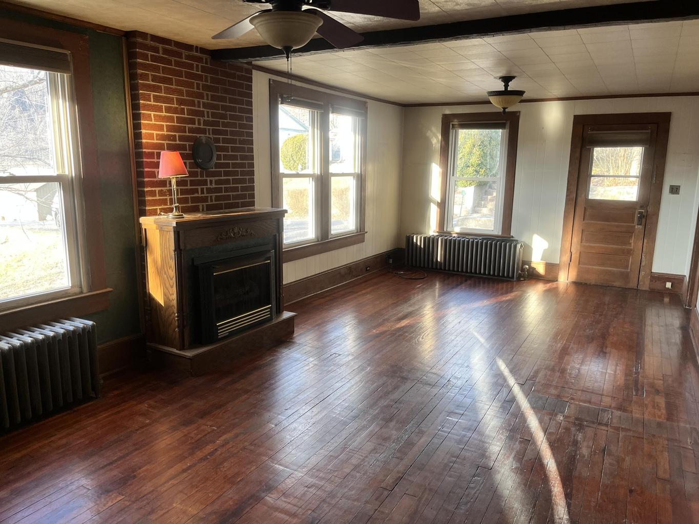 The home features bright light-filled rooms, original pine floors, replacement windows, a propane fireplace, and covered porches. A very nice rear deck offers the perfect place to relax and enjoy the outdoors.